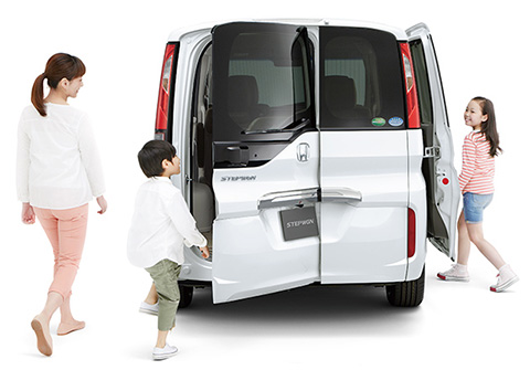もともとステップワゴンは床も低いのが特徴のようですが、さらに天井高もあり、大人でも余裕持って中に入れますね。聞く所によると、トヨタのアルファードより全高が5cm低い割に、ステップワゴンは床が低いので中の高さはアルファードよりも長いんだそうです。小学生あたりまでは十分普通に立てる高さです。